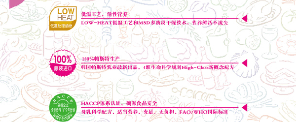 韓羊以母乳營養(yǎng)科學為標準,添加低聚果糖、半乳糖和α-乳清蛋白,含量比例也與母乳相同,營養(yǎng)更為科學,利于消化吸收。