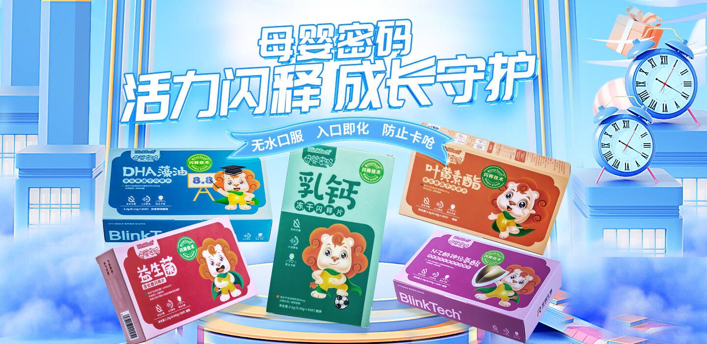 母嬰密碼系列營(yíng)養(yǎng)品采用凍干閃釋技術(shù),具有無(wú)水口服、入口即化、防止卡嗆、起效迅速、輔料量少、用藥量少的優(yōu)勢(shì),為備孕、孕期女性以及廣大嬰幼兒、兒童群體提供基礎(chǔ)營(yíng)養(yǎng),全系列產(chǎn)品包括益生菌含化糖凍干閃釋片、DHA藻油含化糖凍干閃釋片、N-乙酰神經(jīng)氨酸(燕窩酸)含化糖凍干閃釋片、乳鈣含化糖凍干閃釋片、葉黃素酯含化糖凍干閃釋片等。