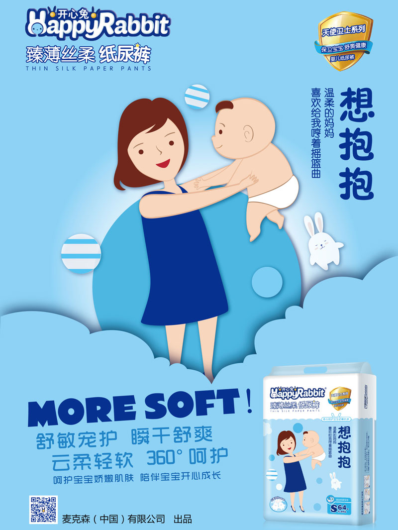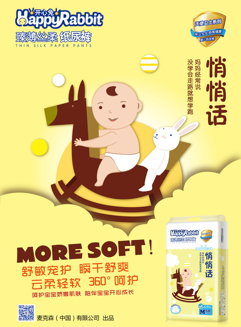 品牌名稱:開心兔 主營產(chǎn)品:開心兔紙尿褲 品牌特色:瞬干舒爽,云柔輕軟,360°呵護(hù),5D維度立體剪裁,不起坨,不斷層