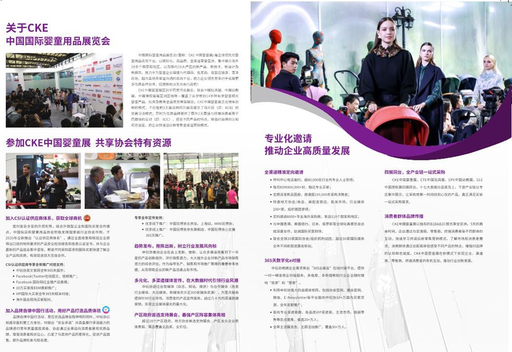 CKE中國嬰童展是全球領(lǐng)先的嬰童用品商貿(mào)平臺,以國際化、高品質(zhì)、全渠道享譽亞洲,集中展示全球新產(chǎn)品、新技術(shù)、新設(shè)計及新趨勢,助力企業(yè)對接代理商、批發(fā)商、母嬰連鎖店、百貨商場、超市賣場等,助力企業(yè)領(lǐng)先競爭對手拓展更多優(yōu)質(zhì)合作伙伴,挖掘新的業(yè)務(wù)方向與商機!