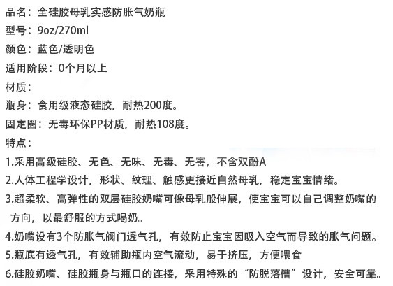 硅膠很柔軟,不用奶瓶刷用手也可以刷到奶瓶的各個角落,容易清洗。寶寶吸奶時,奶瓶會隨著奶水的減少而自動收縮,始終保持著瓶身內(nèi)外氣壓一致,避免寶寶吸入過多的空氣而導(dǎo)致嗆奶、腹脹等不適,有效解決喂奶時脹氣的煩惱,從而達到自動呼吸的功能。