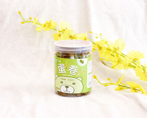 艾比小熊蛋卷系列共包含5種口味,紫薯、椰奶、香蕉、海苔、草莓;精選面粉,含礦物質(zhì)、無(wú)機(jī)鹽、蛋白質(zhì),加入雞蛋液、各種果蔬汁、奶汁、海苔碎片等,經(jīng)成糊、成卷、涂抹植物油烤焙而得,蛋卷色澤金黃偏向其中所加