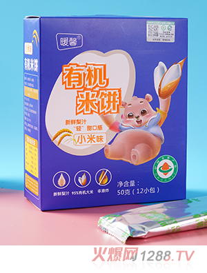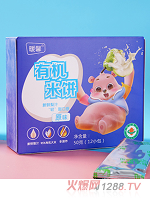 暖馨有機米餅系列,有水果味、原味、蔬菜味、小米味,共四種口味。以有機綠色大米為原料,融合新鮮果蔬,口感層次豐富,滋味美妙。