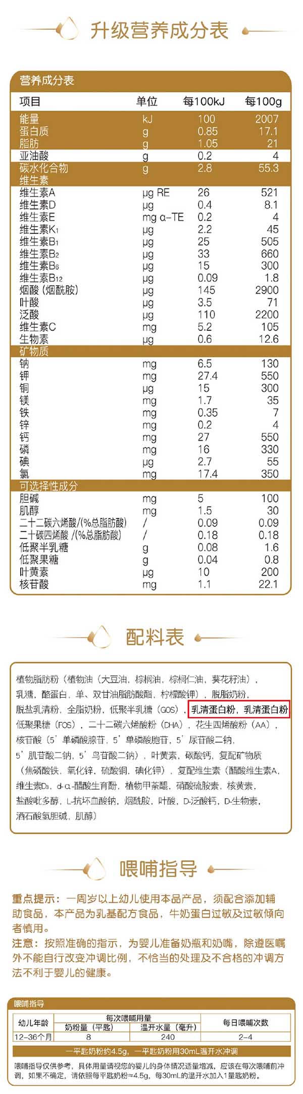 1、全脂、脫脂奶粉:新西蘭Fonterra 2、植物脂肪粉、D90乳清粉:愛爾蘭Kerry集團(tuán)3、a-乳白蛋白:美國(guó)Hilma 4、水解乳清蛋白:新西蘭Tatua 5、復(fù)配維生素、礦物質(zhì):荷蘭皇家迪思曼