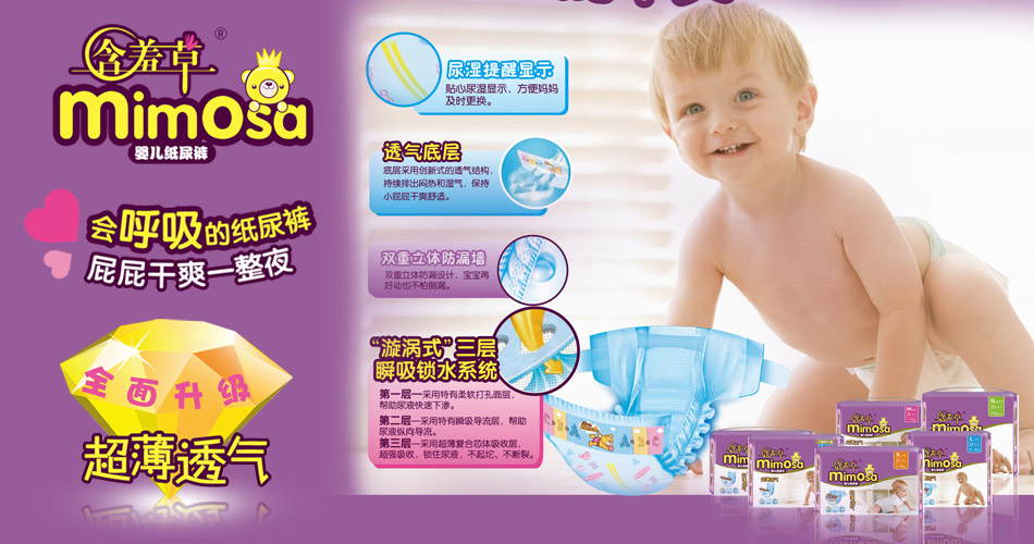 含羞草力求為您提供最優(yōu)質(zhì)的木棉,吸收性最好的SAP,安全放心的食品級(jí)膠貼,在源頭為您把好關(guān),全心全意從細(xì)節(jié)呵護(hù)您。從嬰兒紙尿褲到女性衛(wèi)生用品,再到成人護(hù)理用品,生命綿延不息,含羞草呵護(hù)不止!