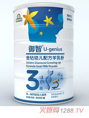 “御智U-genius”為百躍羊乳集團(tuán)旗下羊乳粉品牌,是西安百躍羊乳集團(tuán)和西安御寶農(nóng)牧集團(tuán)為了填補(bǔ)羊乳粉益智類產(chǎn)品的市場(chǎng)空白而推出的高端益智類羊乳粉品牌,產(chǎn)品配方在保持羊乳粉純正濃香的同時(shí),充分考慮中國(guó)及成人的體質(zhì)特點(diǎn),以“多元益智配方”為基礎(chǔ),配合添加OPO結(jié)構(gòu)脂、酪蛋白磷酸肽CPP、乳鐵蛋白、動(dòng)物雙岐桿菌Bb-12、左旋肉堿、葉黃素等多種對(duì)人體更加有益的營(yíng)養(yǎng)元素,配方更安全,營(yíng)養(yǎng)更全面,更易消化吸收,充分體現(xiàn)了“御智羊乳,智慧結(jié)晶”的產(chǎn)品理念。